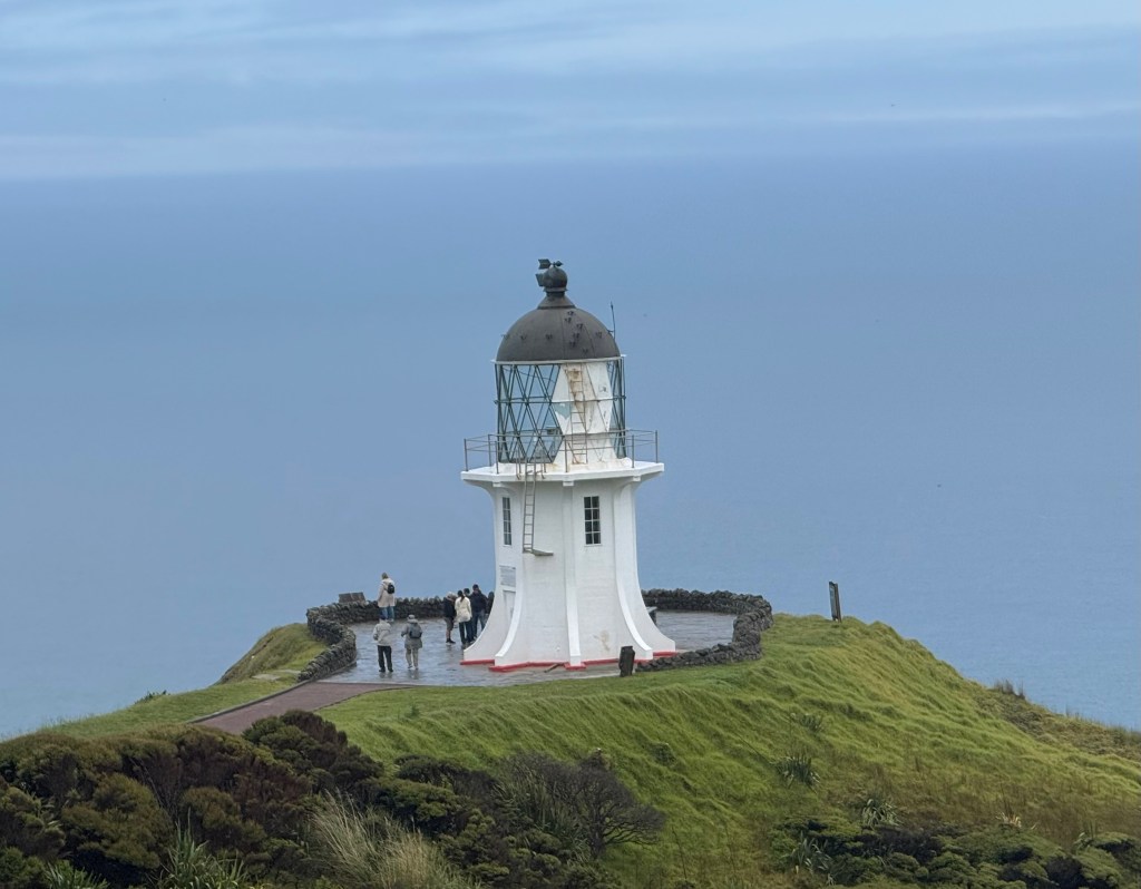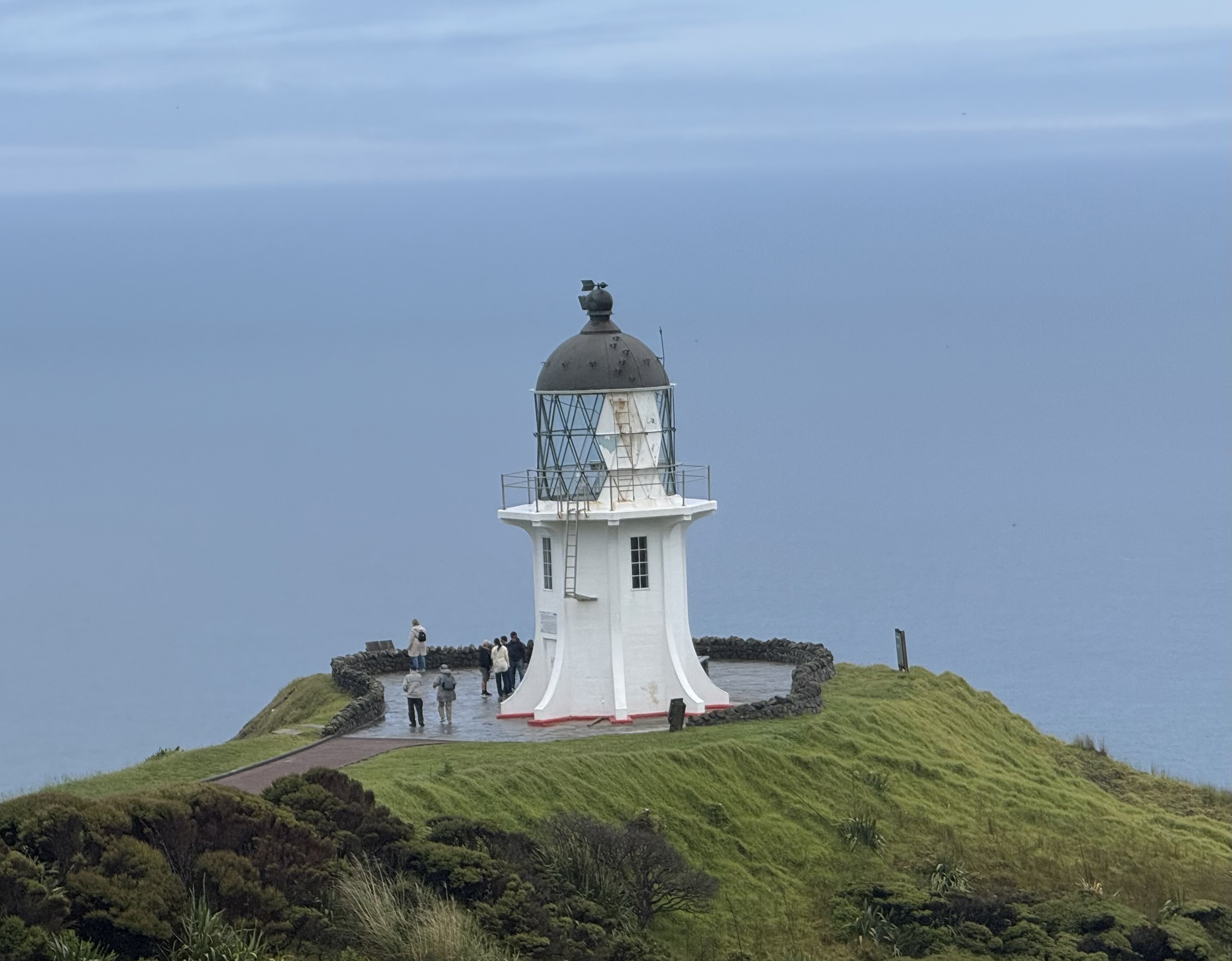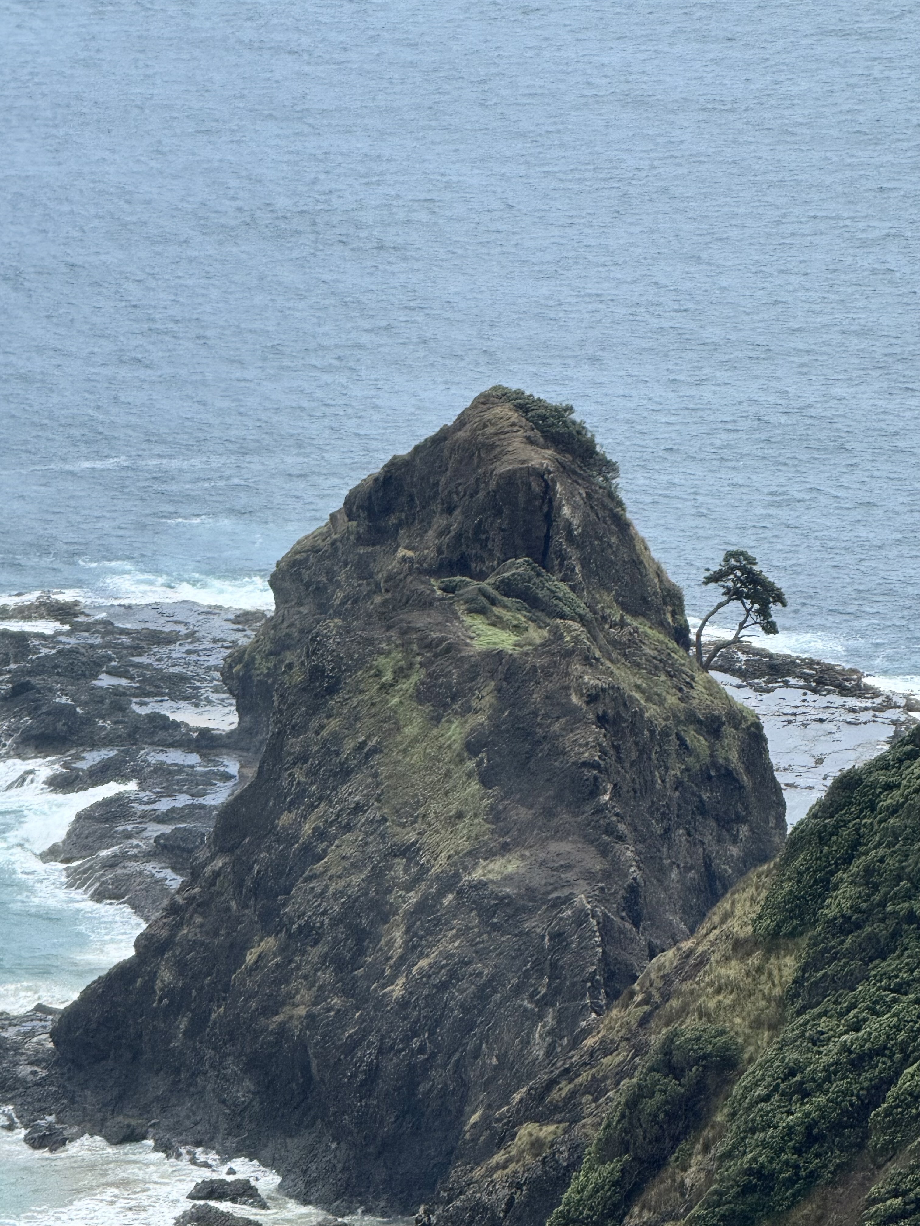 That was the perfect starting point to head to the farthest North point of the country, Cape Reinga. It was threatening rain, but turned out to be a magical day. As I approached the parking area for the Cape, it was raining and foggy. I was disappointed since I couldn’t see the ocean at all. I decided to get out of my car and walk over to the restrooms anyway, and when I did the rain slowed and I could see an archway with a path leading through it. As I walked through the arch, the fog began to lift and I could see the lighthouse in the distance. Now, do I want to walk down there? If I do, it means an uphill walk on the way back and I’m not getting any younger, you know. I decided to go a little way to take some photos. Then a little further. Then the fog lifted completely and I went a little further. Yes, I ended up at the lighthouse, and glad I did. This is the place the Maori believe their dead come to so they can climb down the roots of the tree at the point to their afterlife. It’s a sacred place, and you can feel it. Oh, and the walk back up was actually pretty easy.