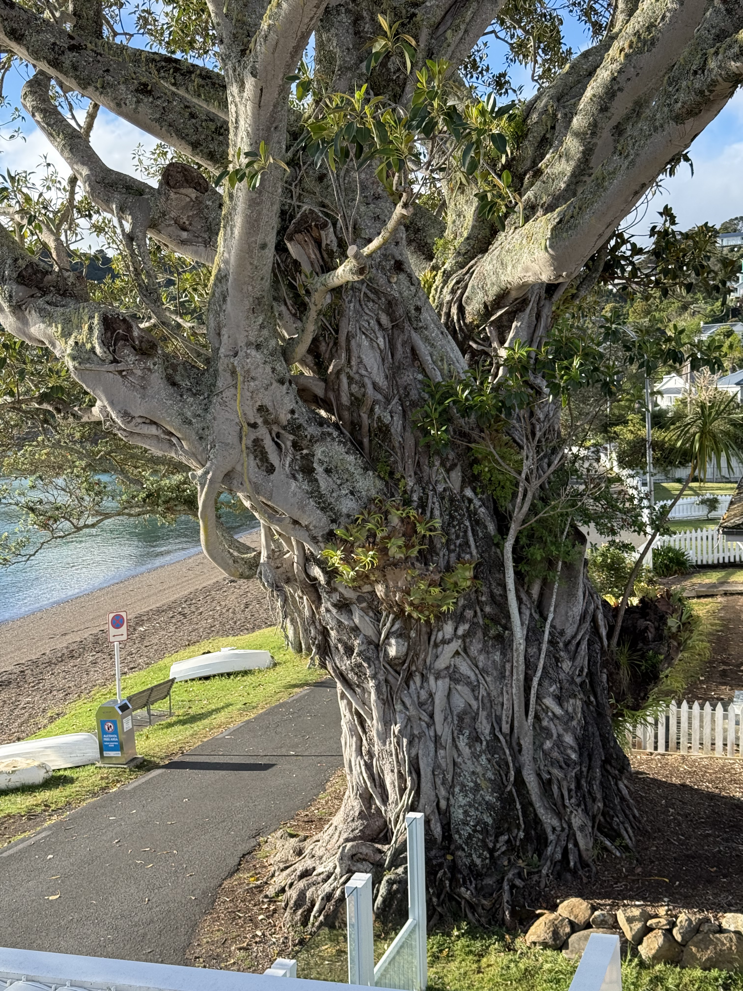 Russell is a lovely town, and I loved the hotel. They treated me like royalty, and I had a suite with a balcony overlooking the bay. The Moreton Bay Fig Tree was right next to my balcony, and I think it must be at least 10 feet in diameter. Polly and I enjoyed sitting on the balcony with a glass of New Zealand wine and watching the sun set. There were some great little shops in the town, and in one I had a long conversation with the shopkeeper, who is an American expat who moved here for love. Always a great story.