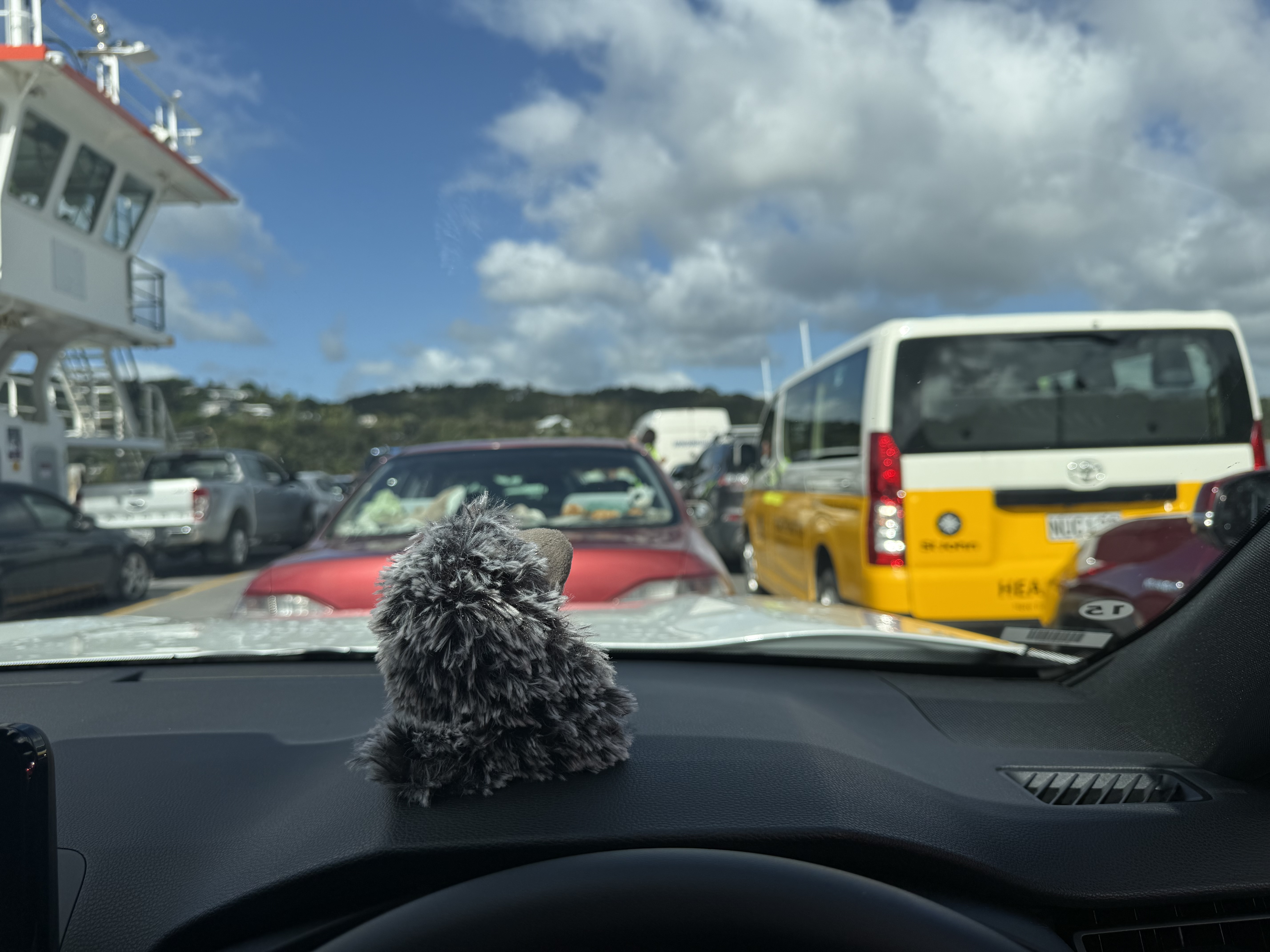 Somewhere along the way someone mentioned I’d be taking the ferry to Russell, but looking at a map I found that it’s on the mainland so there must be a road, right? There is, but it didn’t take long to realize it wasn’t a good idea. All gravel, narrow, with warning signs not to drive a camper on it. I figured Avis would not be happy, so I backtracked and lined up for the ferry. There’s a photo in the gallery above, with Polly sitting on my dash checking out the other vehicles on the ferry. It was really easy-just drive on, stay in your car and they come around to take your payment.