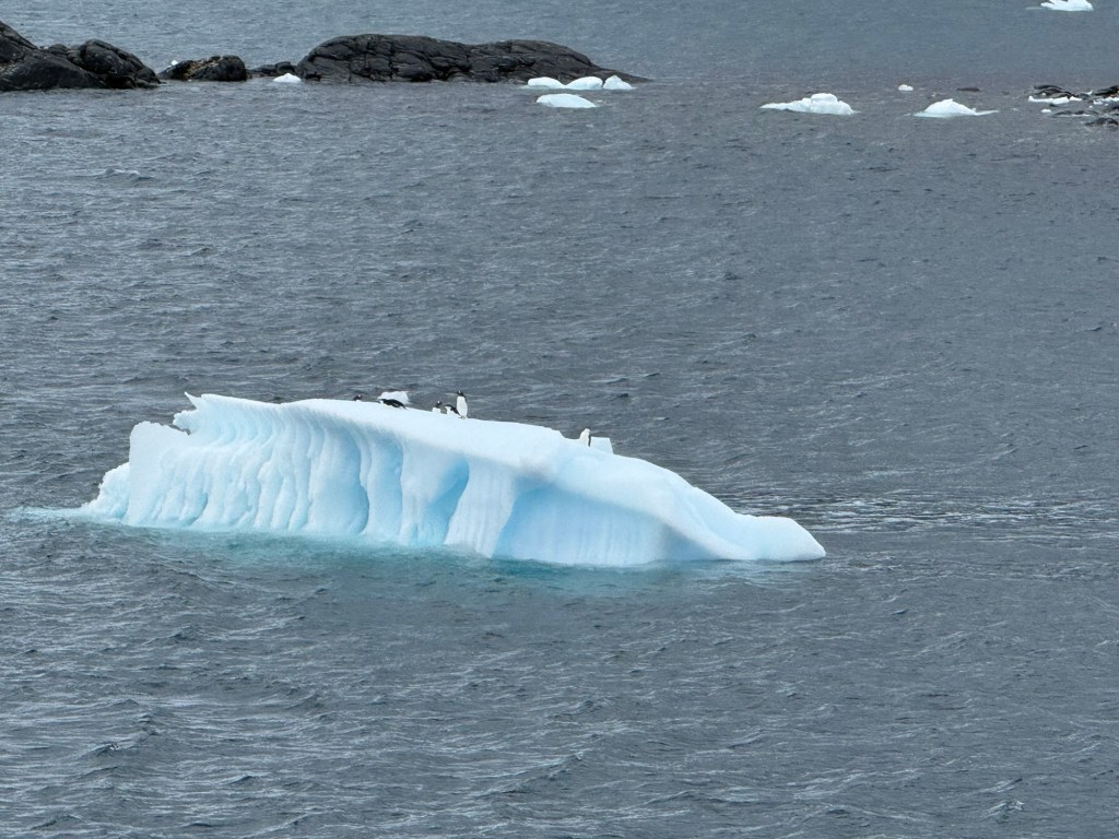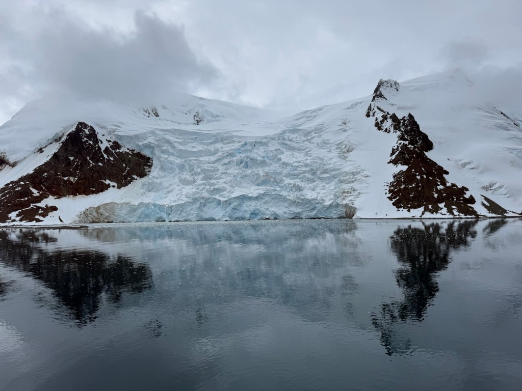 That afternoon we went on to Admiralty Bay, where we viewed several more research stations and thousands of penguins, both on land and in the water. The weather there was much nicer, with the water being calm and reflective.