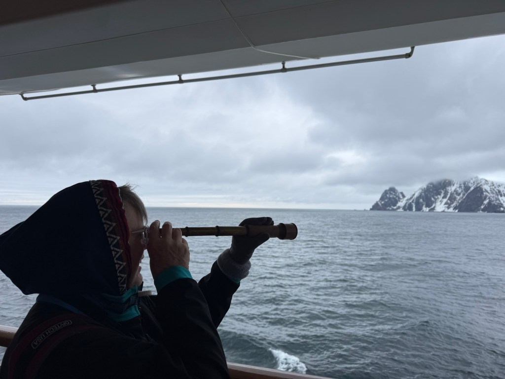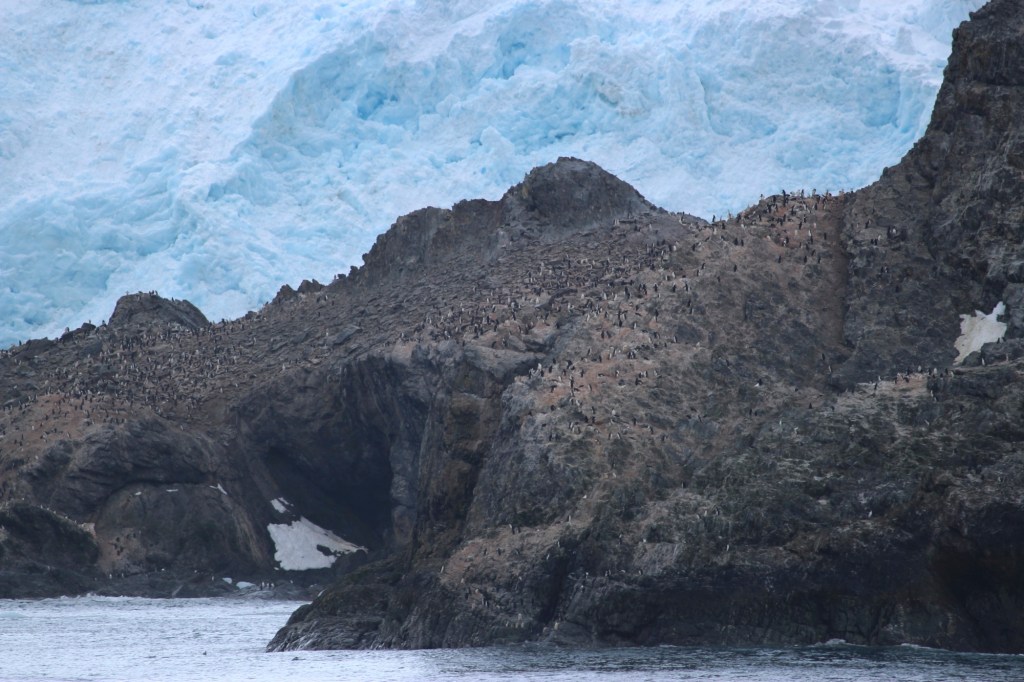 There were whales, birds, elephant seals, and an incredible population of penguins. We would see the penguins “porpoising” near the ship-swimming along and jumping as they went. There were penguins on icebergs. There were penguins on the rocks. At first I was looking at a rocky hillside that actually had some rare plant life growing. But when I looked through my binoculars I realized those weren’t rocks among the plants. It was penguins! Thousands of them. That view happened again and again throughout the four days.