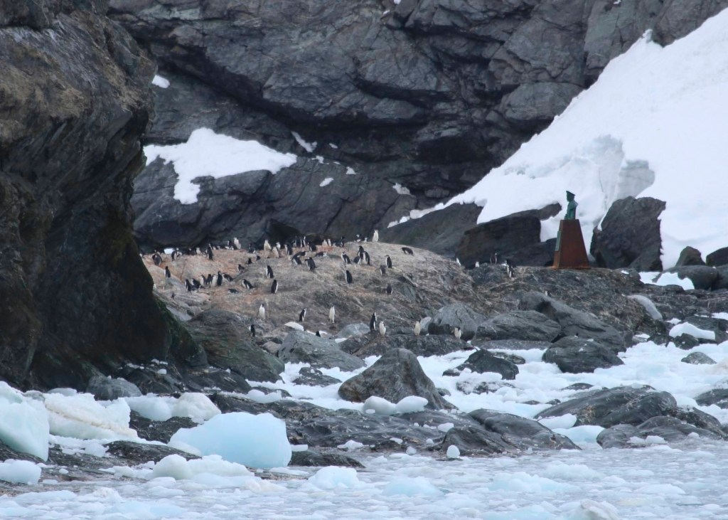 On the fourth day we sailed completely around Elephant Island and spent some time at Point Wild in the bay where the Shackleton Expedition sought refuge after their ship, The Endurance, was crushed by the ice in 1915. The story is an amazing one and I want to do more research on it. There is a monument on the spot where the stranded crew lived through the winter, featuring a bust of Captain Pardo, who rescued the crew.