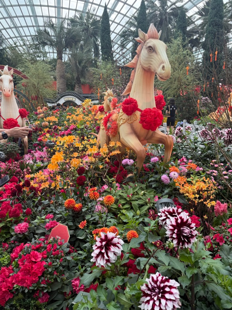 Then we went across to the Flower Gardens, which were all dressed up for the coming Chinese New Year-the year of the horse. Actually, signs of the coming new year celebration were everywhere-beautiful decorations and lanterns, and red clothing to bring good luck.
