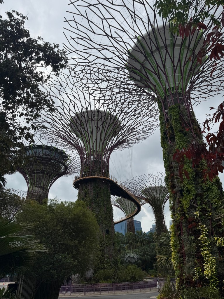 Then we again took the Metro to the Marina Bay area to visit the beautiful gardens that were created on reclaimed land. We visited the domed Cloud Forest, with the highest indoor waterfall in the world. They had a special exhibit that incorporated Jurassic Park creatures into the gardens, so you never knew when you might come across a dinosaur.