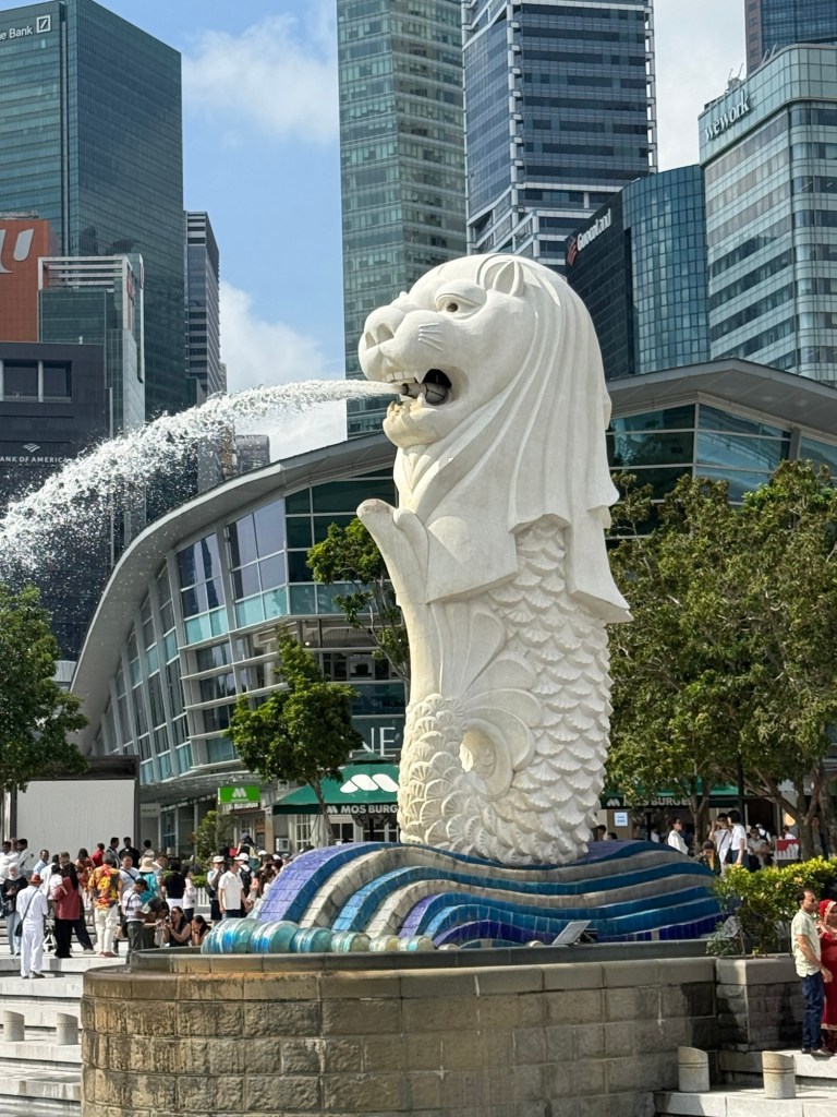 The next day we had a few hours before boarding our cruise ship, so we again took the Metro down to the bay. We wanted to visit the Merlion, the fountain/statue that has come to symbolize Singapore, and then go to the Long Bar at the historic Raffles Hotel for a Singapore Sling. Unfortunately, we weren’t the only people with that idea, and there was a line at Raffles. We were told it would be at least a half hour before we could enter. After doing the math and realizing we had to return to our hotel for our luggage and get to the port before our ship sailed at 3 PM, we decided to save it for another time.