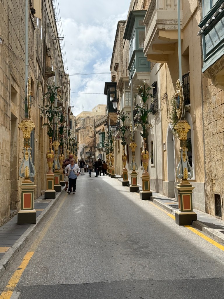 As with all of Malta, the streets were decorated for the Lenten season. Malta is about 70% Catholic (down from over 90% a couple of decades ago) and Lent and Easter celebrations take center stage.