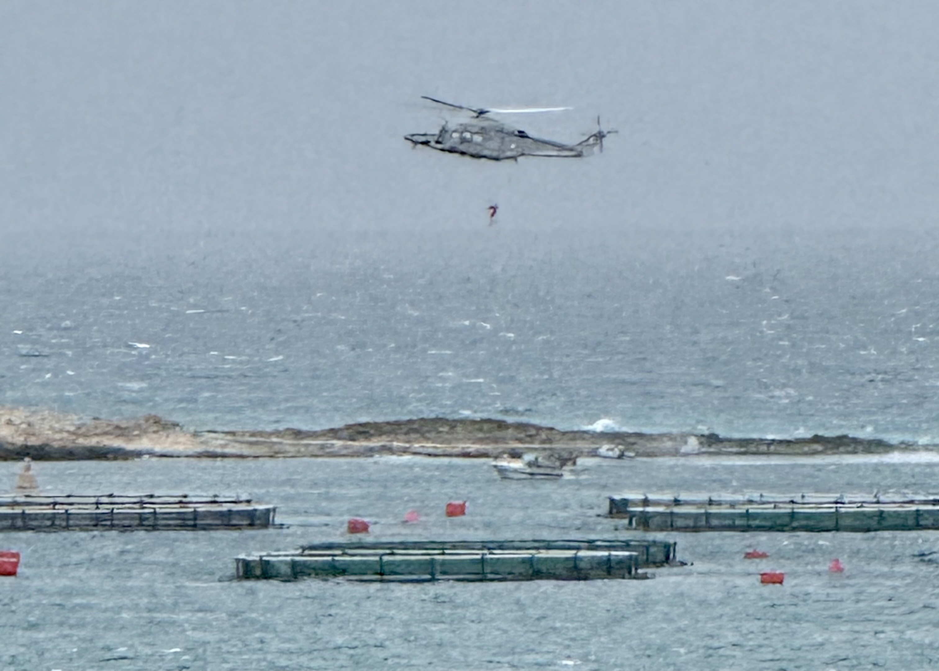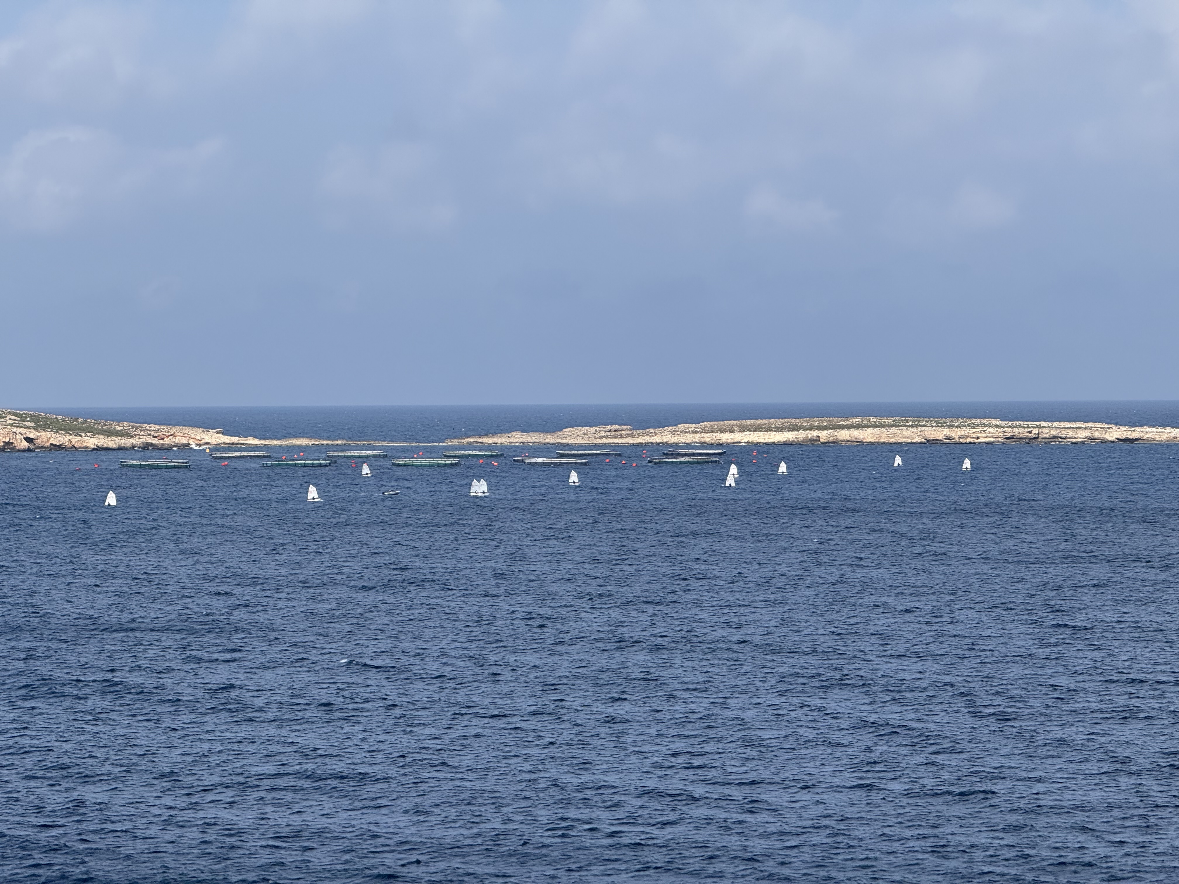 The strip of land in the photo is where legend says St. Paul was shipwrecked. After seeing the way the waves were crashing, I can understand why. The structures in the bottom of the photo are fish farms.