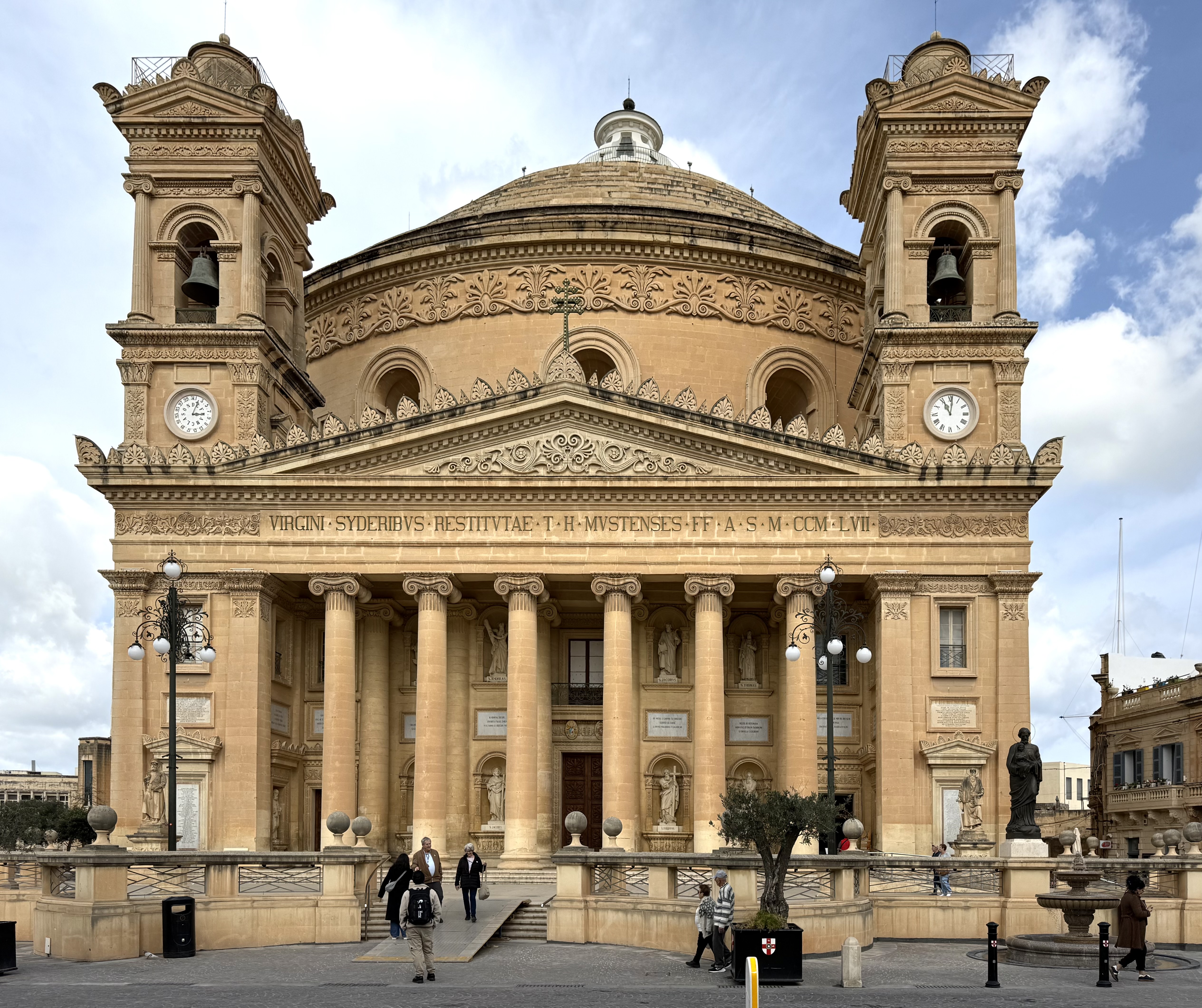 Most Maltese honor the church as the site of a miracle in WWII. Mass was being held during a bombing raid, and many parishioners stayed in the church rather than heading to the air raid shelter below. A bomb crashed through the dome and dropped near the altar, but didn’t explode.