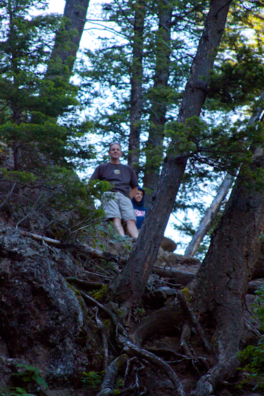 There must be some unwritten law that if you are a young male and there are rocks to climb, you are driven to travel upward. First I turned around to find Josh up on the ledge, and then Thomas’ head appeared behind him.