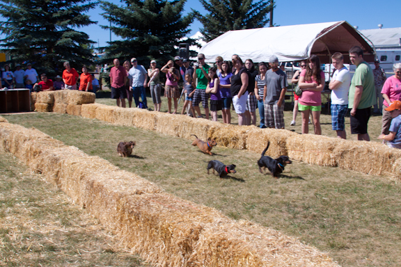 After wandering a bit more we heard something going on with an announcer and people cheering. We decided to investigate. It was a wiener dog race. Seriously. In Bozeman. Montana.