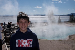 We finally found our way up to Yellowstone, where Grandson Thomas did the requisite pose in front of the entrance sign.